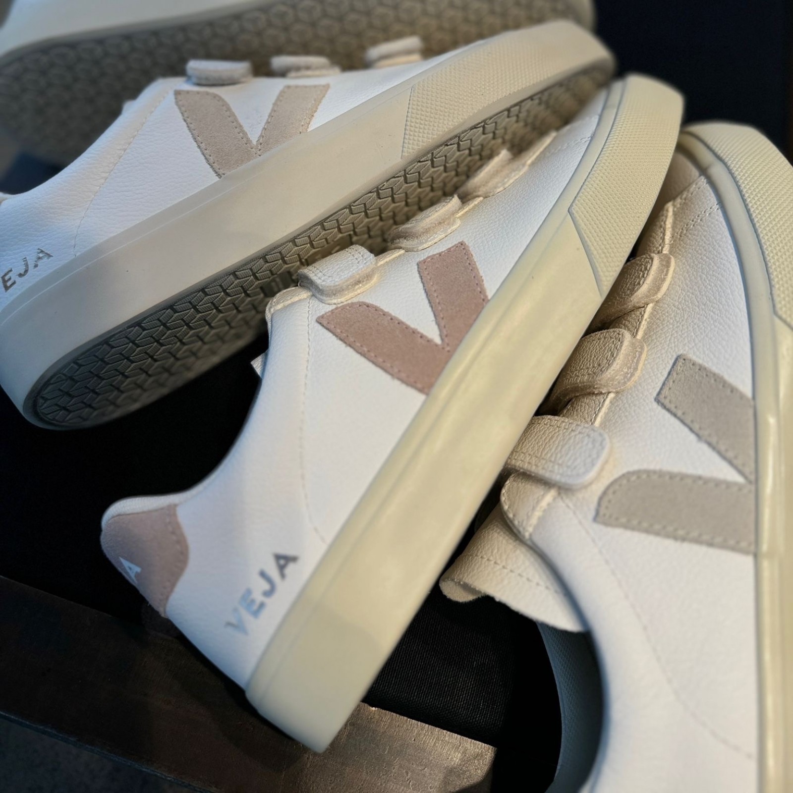 Si vous aimez le modèle Recife, nous avons aussi les Veja Esplar, un modèle similaire mais avec une semelle plus fine, offrant un look sobre et discret. Les Esplar sont disponibles dans les coloris platine (doré) et émeraude (vert), pour compléter vos tenues avec élégance.